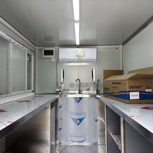 - Durable stainless steel countertops and sinks for easy maintenance and sanitation.
